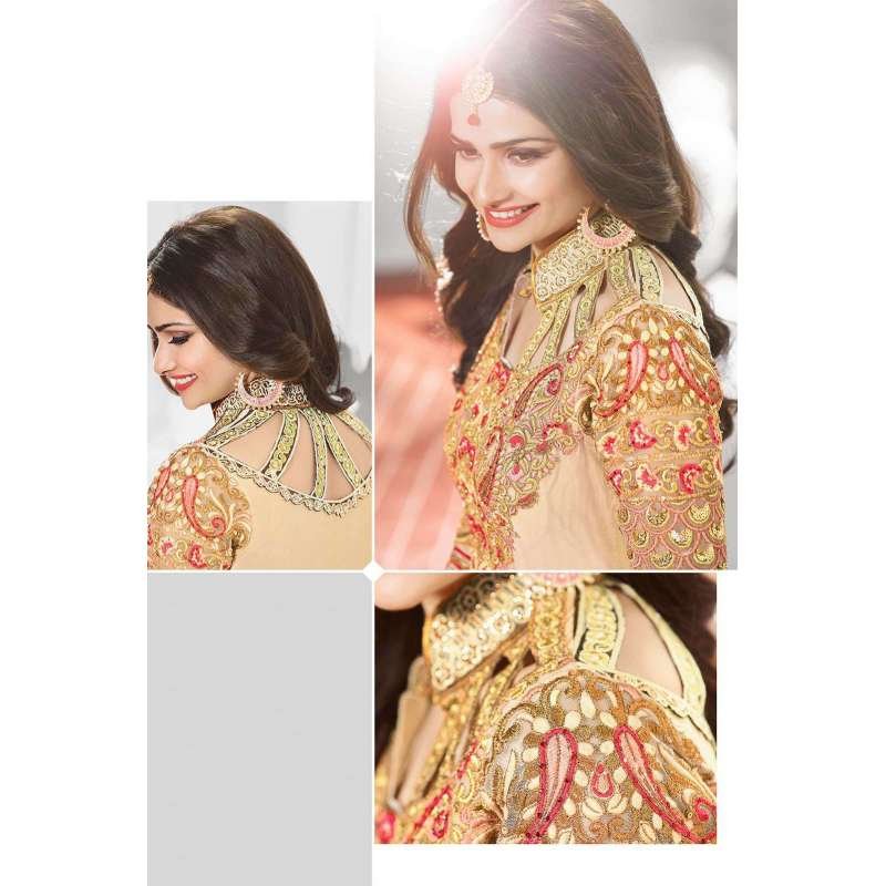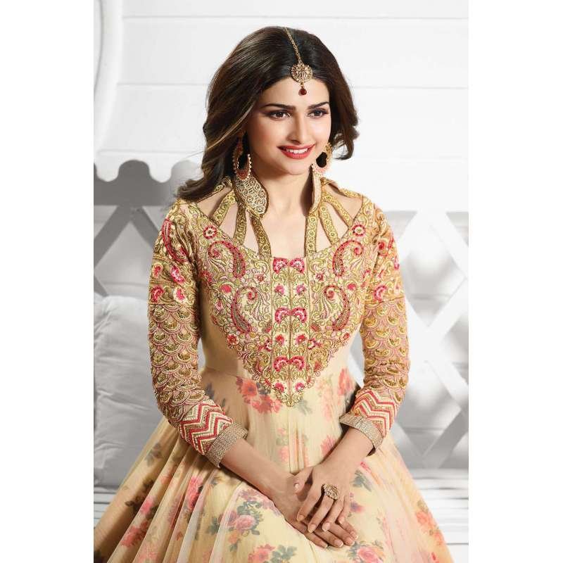 Anarkali suits modeled by Prachi desai. this dress is beautified with heavy embroidery.