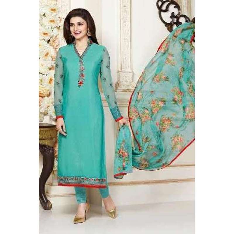 straight cut style suit modeled by prachi desai. this dress is beautified with