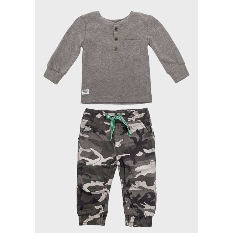 Charcoal Grey Boys Designer Top + Camo Pants Set