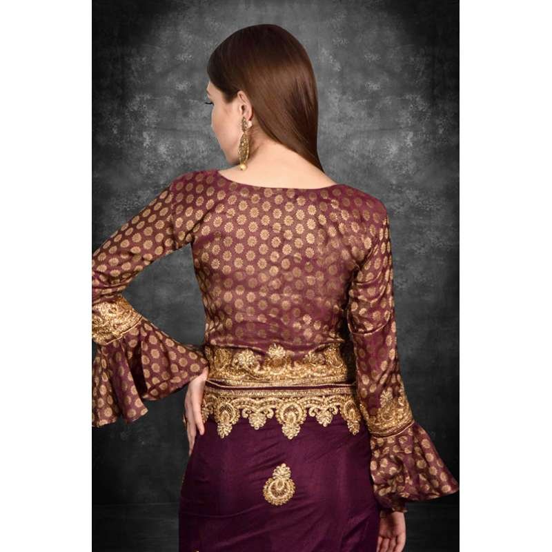 Magenta Purple Brocade Style Blouse Ethnic Saree