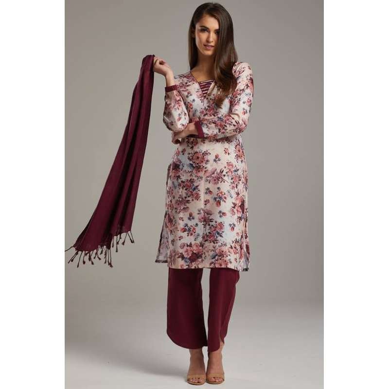 Maroon Floral Printed Pakistani Designer Readymade Suit