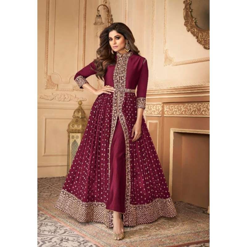 Maroon Indian Designer Party Wear Front Slit Anarkali Dress