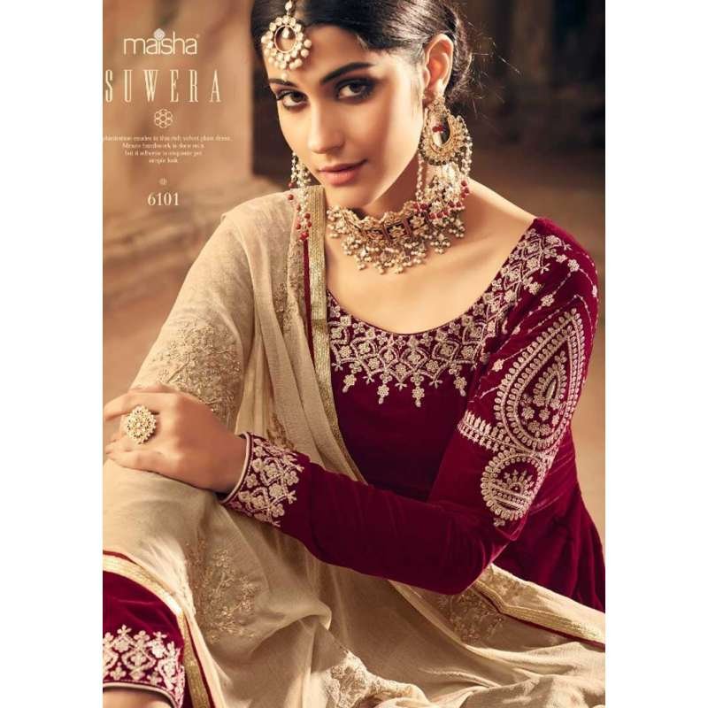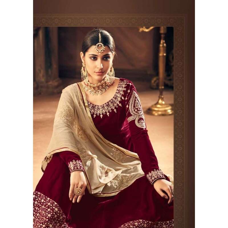 MAROON INDIAN DESIGNER FALKEN VELVET ANARKALI GOWN ( 2-3 weeks delivery )