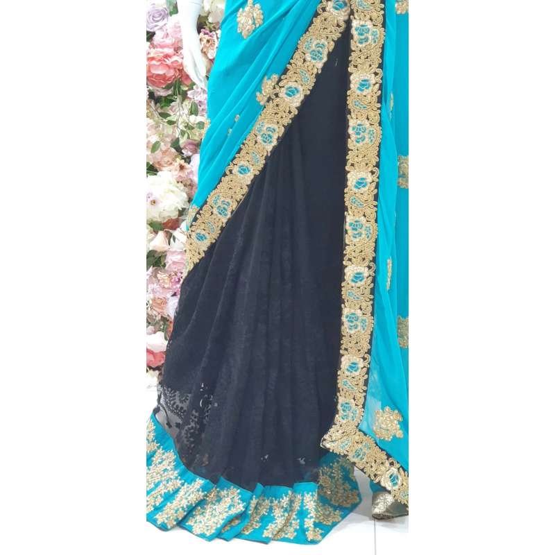 MOSAIC BLUE AND BLACK ETHNIC PUNJABI FESTIVE SAREE