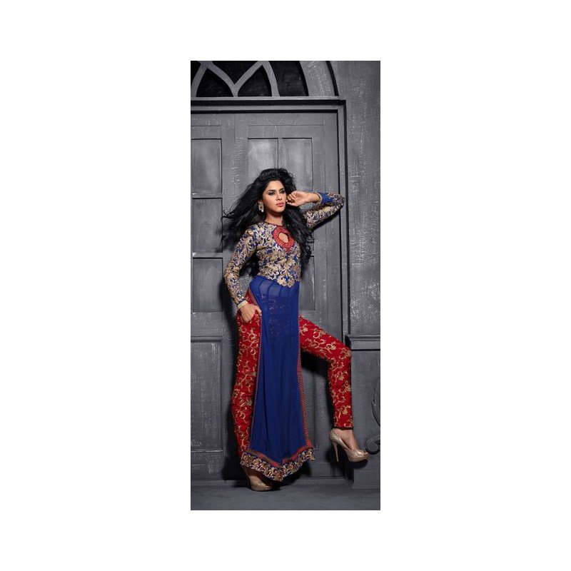 ZMS12010 Blue With Red MAISHA MASKEEN Dress