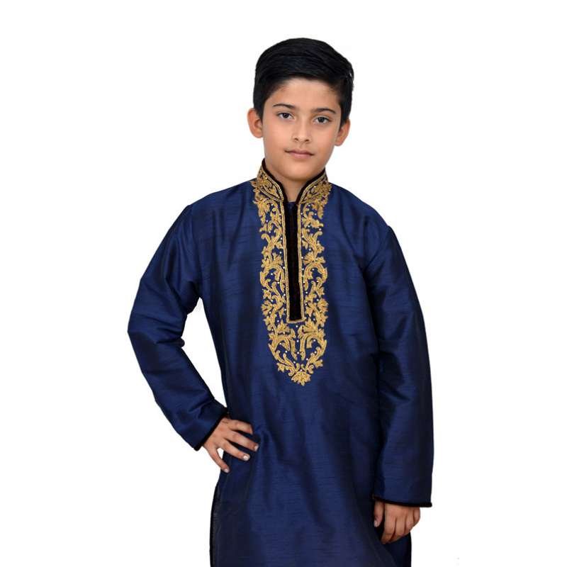 NAVY BLUE GOLD KURTA SET AND PYJAMA READY MADE BOYS SUIT