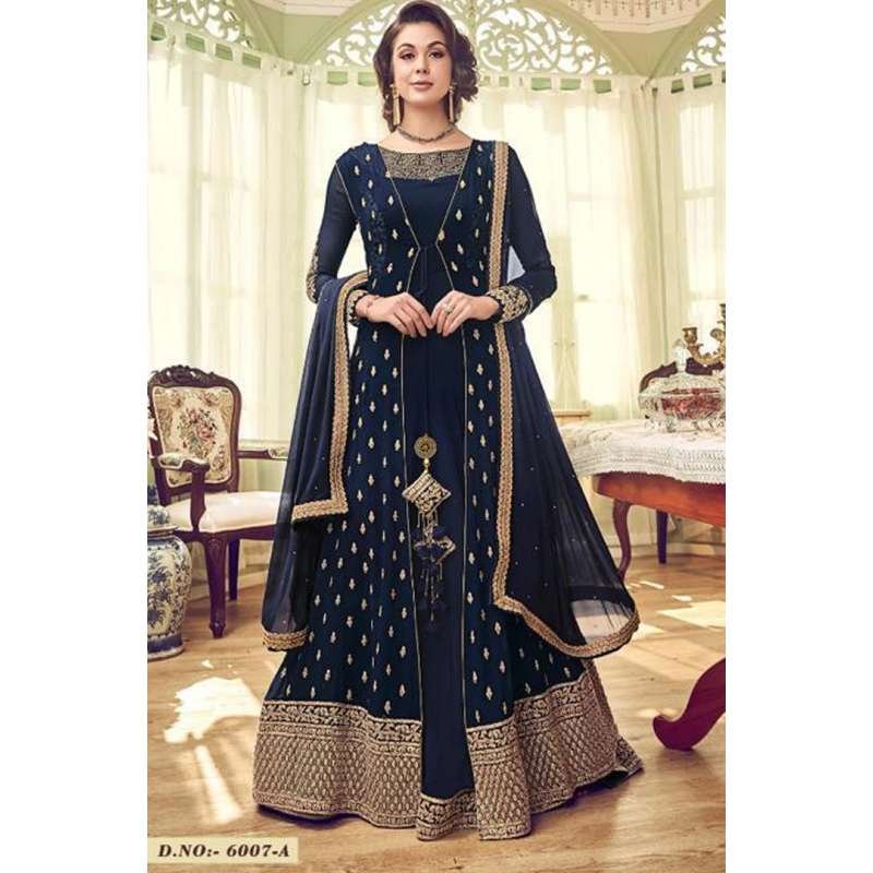 NAVY BLUE GEORGETTE INDIAN JACKET STYLE ANARKALI DRESS