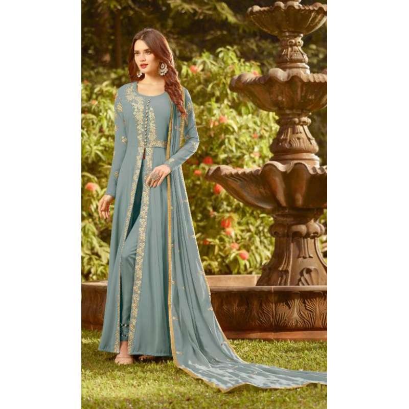 INDIAN PAKISTANI PARTY WEAR FRONT SLIT FLOOR LENGTH DRESS (4  weeks delivery)