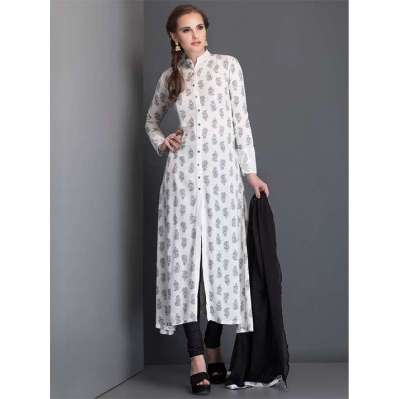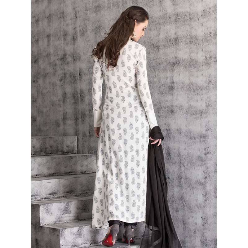 OFF WHITE BLOCK PRINT SLIT STYLE KURT AND CHURIDAAR READY MADE SUIT