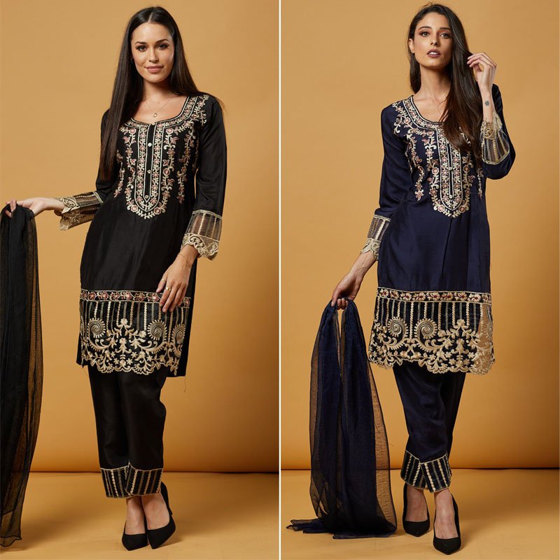 Readymade pakistani premium linen with contrast embroidery