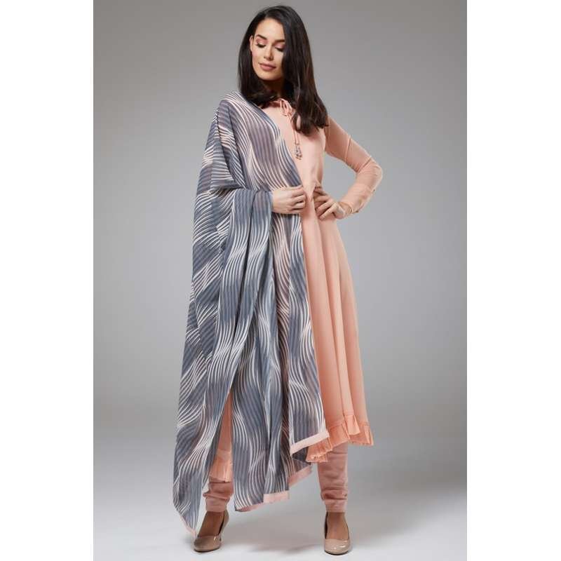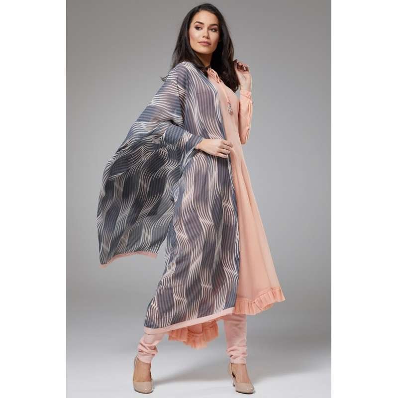 PEACH NOUGAT PAKISTANI DESIGNER A LINE SUIT WITH CONTRAST DUPATTA