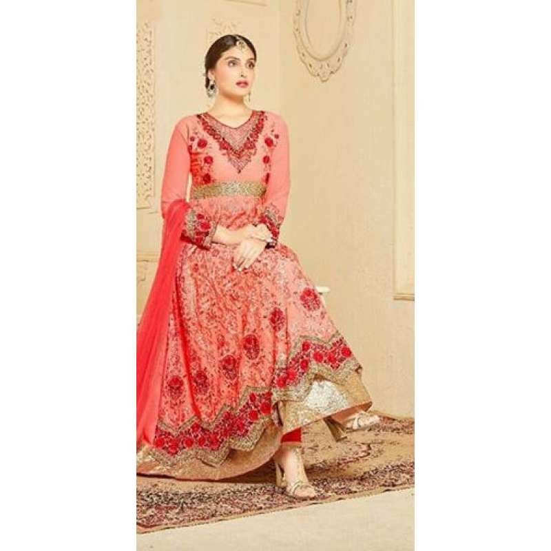 Indian Maxi Coral Peach Party Evening Wedding Anarkali Suit (Ready Made XXL )