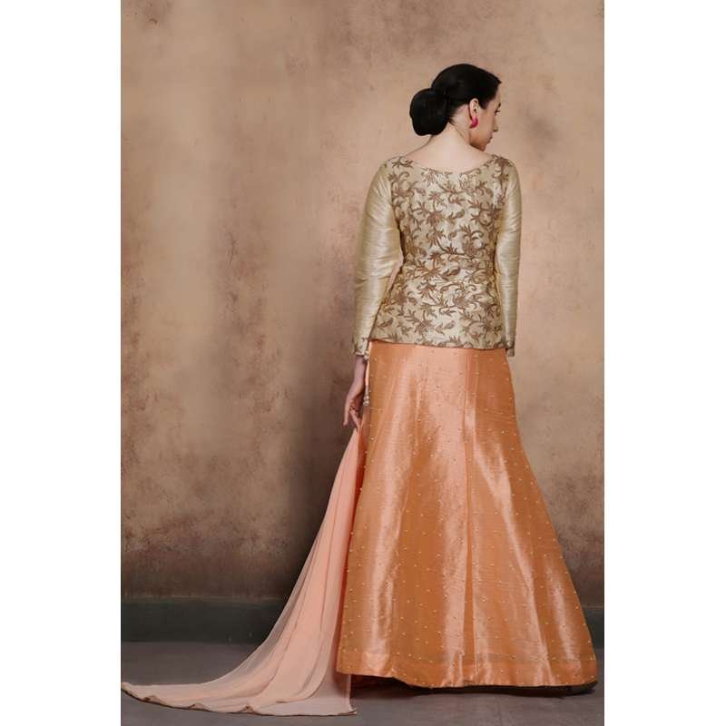 Gold Top Peach Silk Banglori Choli Readymade Suit