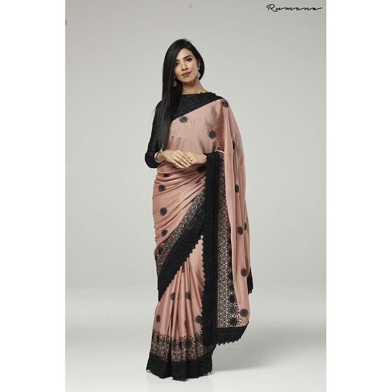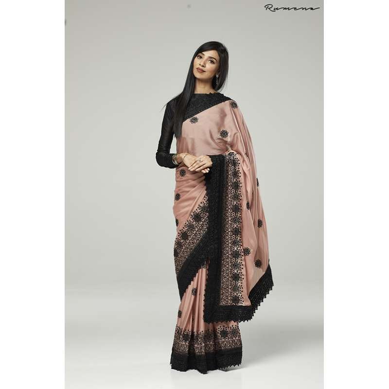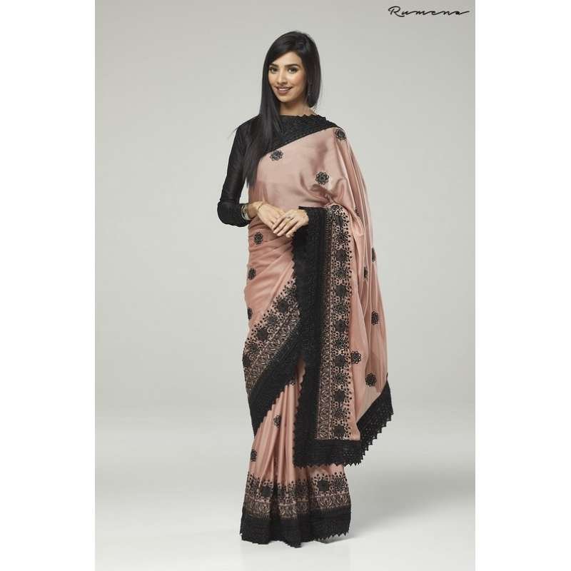 ZACS-731 ROSE PINK AND BLACK EMBROIDERED INDIAN WEDDING SAREE
