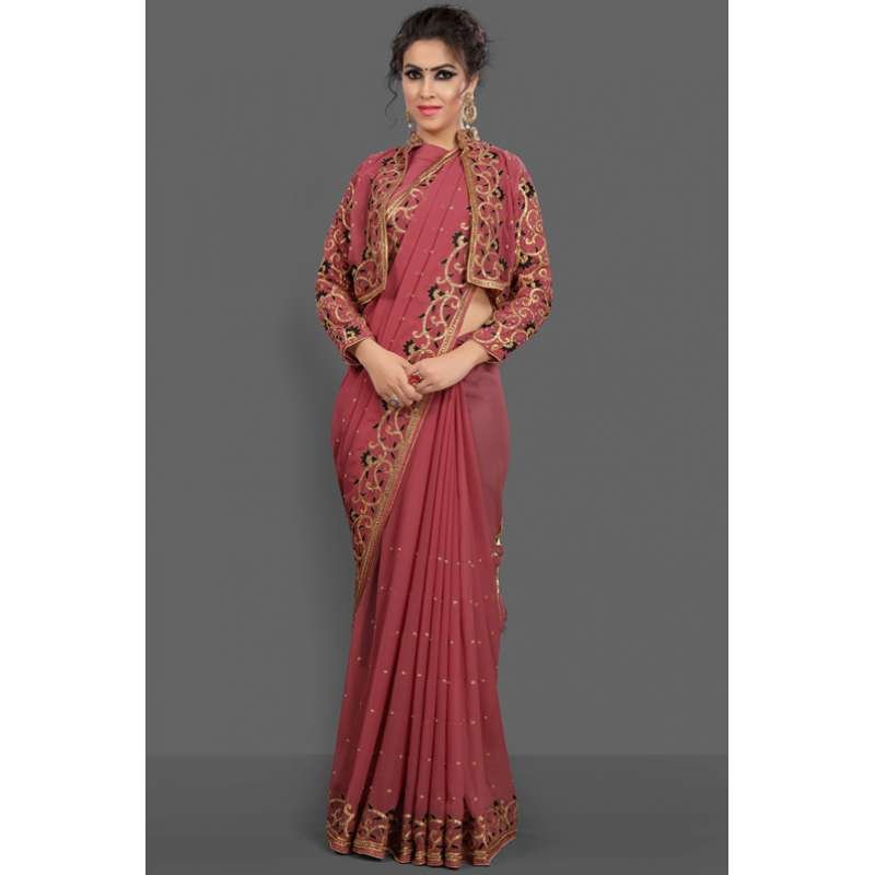 Tags: rose pink saree, blouse, ready made blouse, indian saree, pakistani saree, asian saree, designer saree, wedding wear saree, sari, party wear, wedding wear saree, party saree uk. jacket style saree,