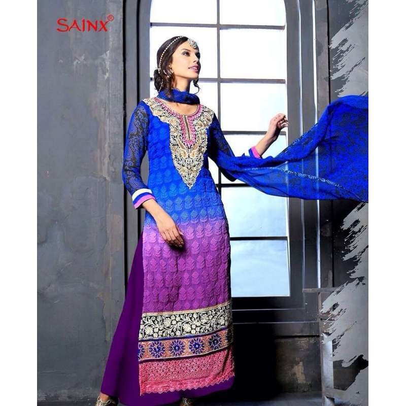 Blue and Purple SAJEELE BY SAINX PARTY WEAR SHALWAR KAMEEZ