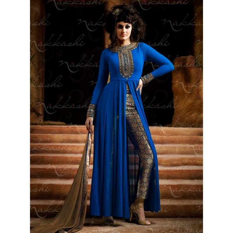 NAKKASHI 3021 ORIGINAL BLUE COLOUR DESIGNER PARTY WEAR SUITNakkashi 3021 colors dresses is a dazzling collection by Nakkashi. Nakkashi Immortal 3021 colors dresses has come with 5 mind blowing colors in single design with gold trousers.