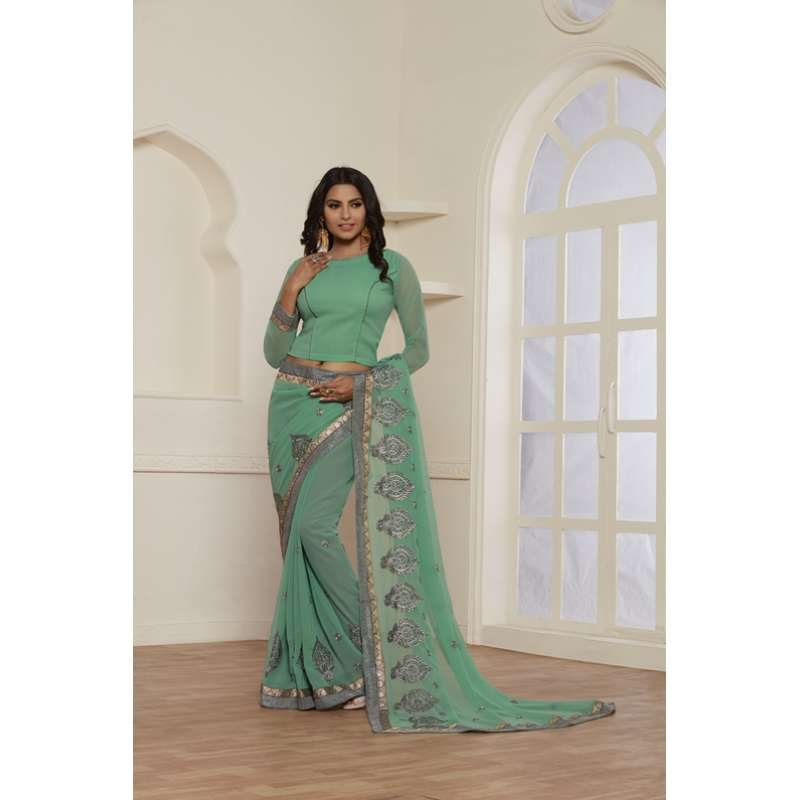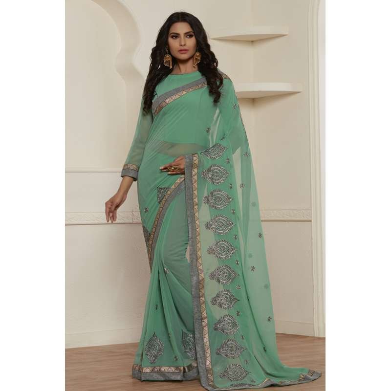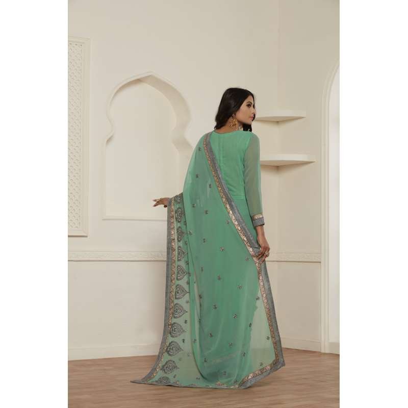 STUNNING SEA GREEN GEORGETTE PAKISTANI CASUAL WEAR SAREE