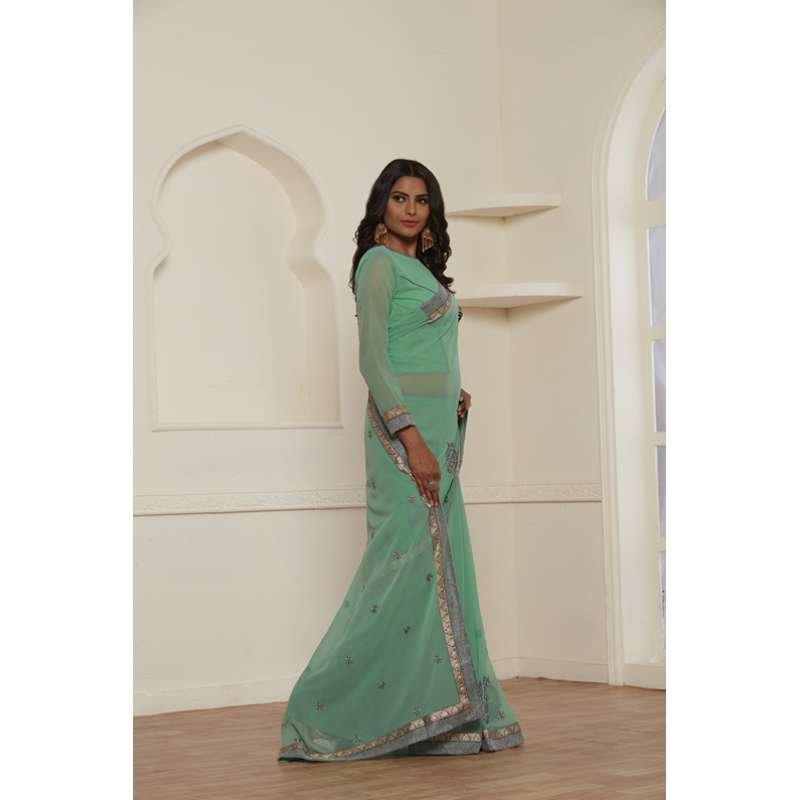 - Sea green classic saree in