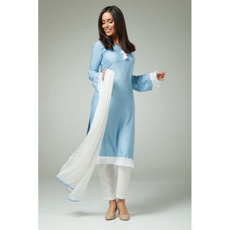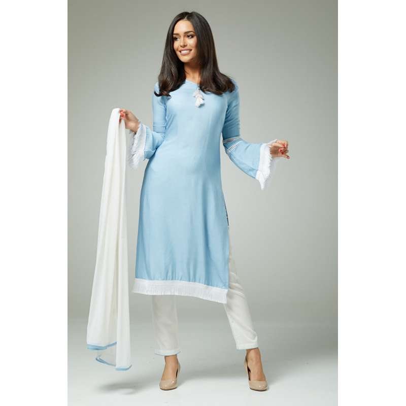 UNIQUE SKY BLUE AND WHITE PAKISTANI DESIGNER READYMADE SALWAR SUIT