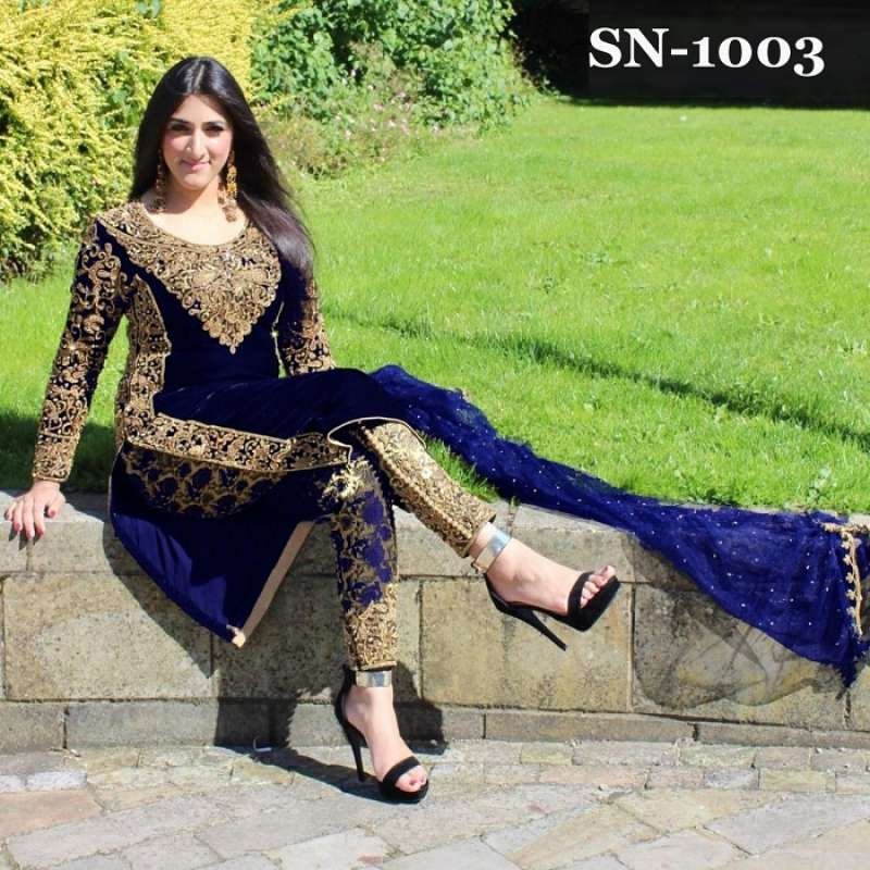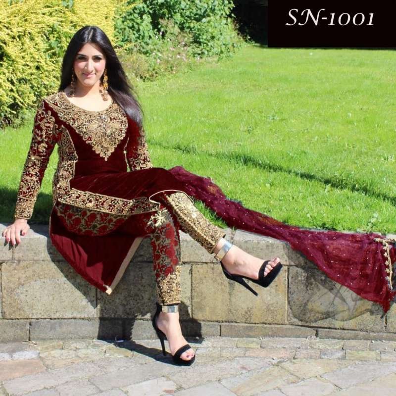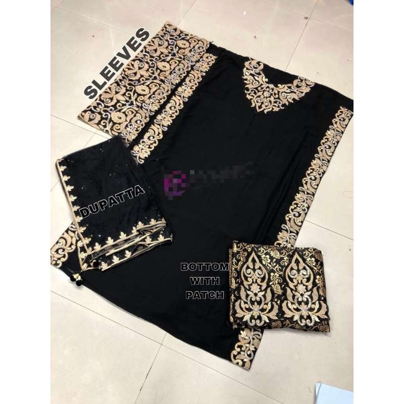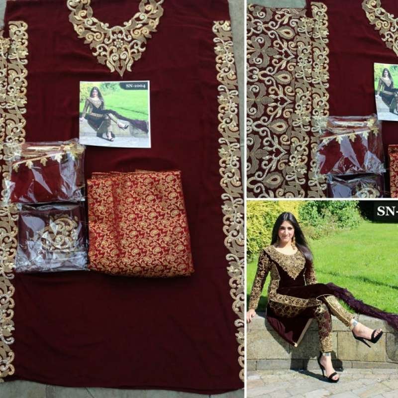 STUNNING VELVET WINTER WEAR EMBROIDERED GOLD BORDER SUIT ( IN STOCK TODAY )