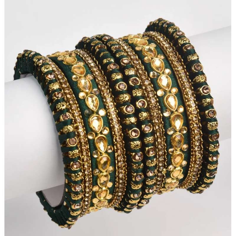 Dark Green Gold Indian Kundan Bangle at Asian Couture UK