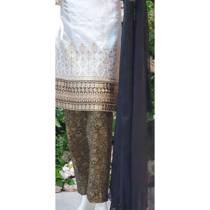BRILLIANT WHITE SOPHISTICATED LINEN READYMADE SALWAR SUIT MEDIUM