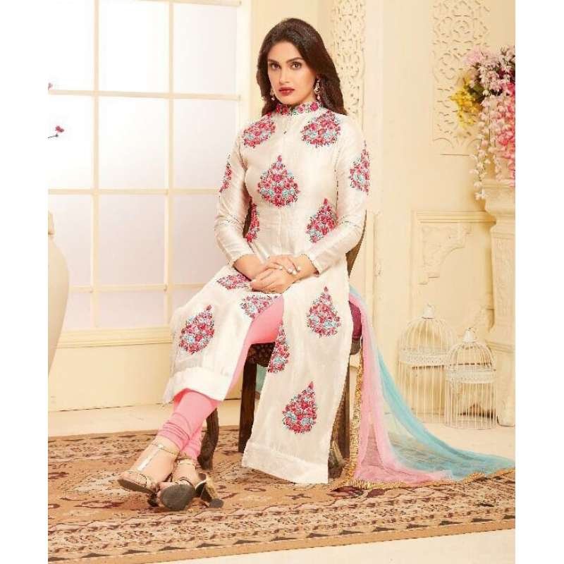 WHITE EMBROIDERED READY MADE SALWAR SUIT