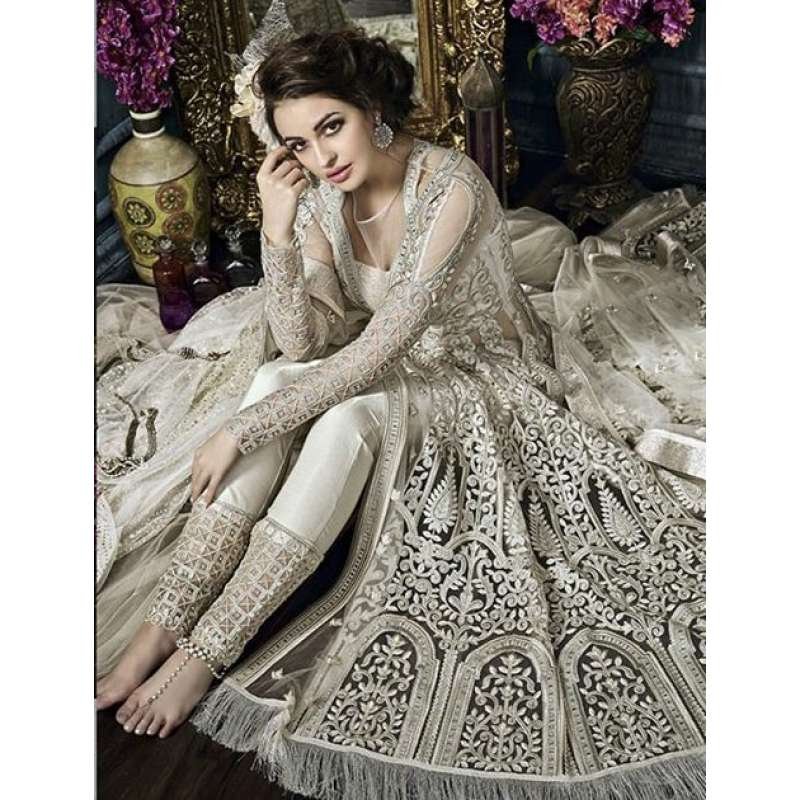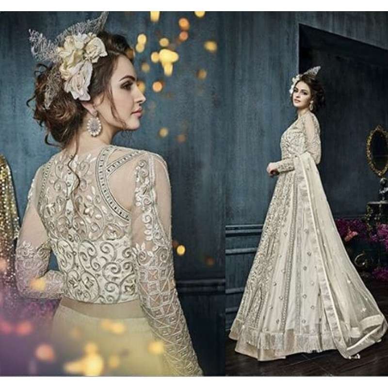 White Net Anarkali Gown Indian Ethnic Wedding Dress